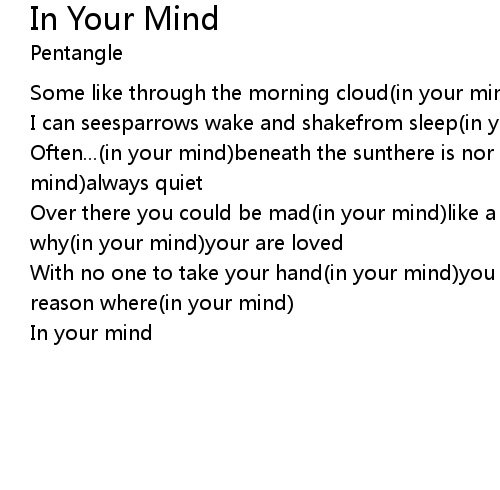 | With no one to take your hand(in your mind)you are afraidtime to rest and the reason where(in your mind) | |