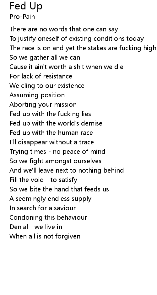 | Fed up with the fucking lies | |
