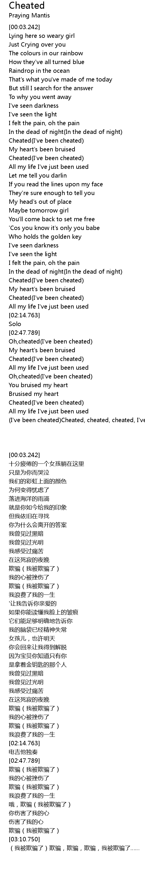 Cheated(I've been cheated) |