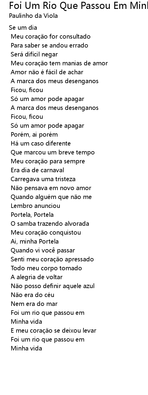 | Song | Foi Um Rio Que Passou Em Minha Vida |