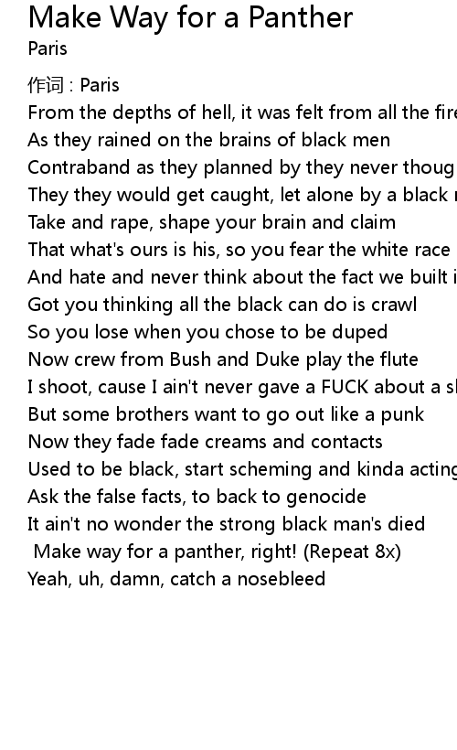 | Make way for a panther, right! (Repeat 8x) | |