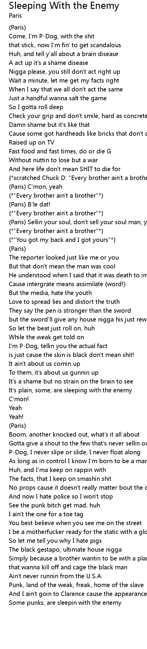 {*scratched Chuck D: "Every brother ain't a brother"*} |