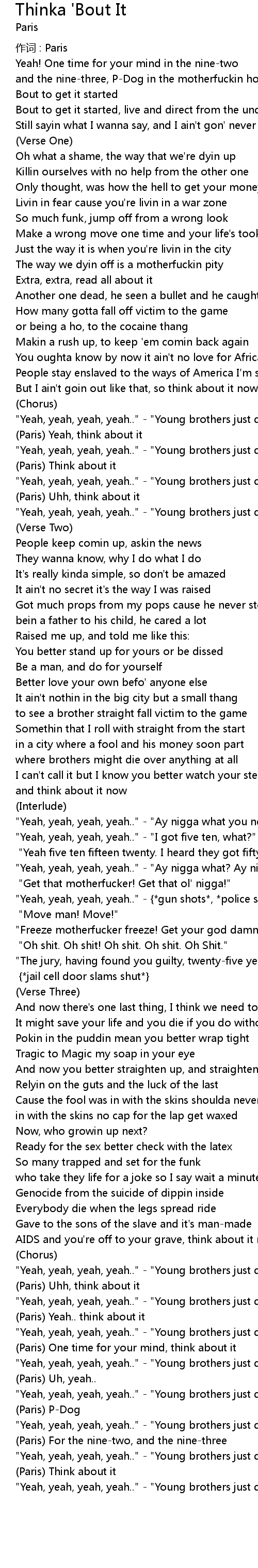 | "Yeah, yeah, yeah, yeah.." - {*gun shots*, *police siren*} | |
