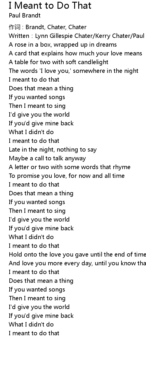 | Written: Lynn Gillespie Chater Kerry Chater Paul Brandt | |