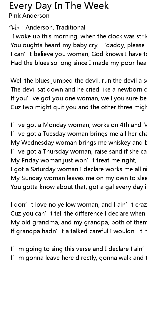 | I' ve got a Monday woman, works on 4th and Main | |