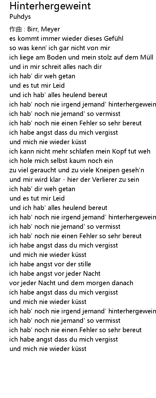 | ich hab' noch nie irgend jemand' hinterhergeweint | |