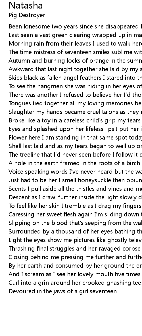 Eyes and splashed upon her lifeless lips I put her in the ground like a |