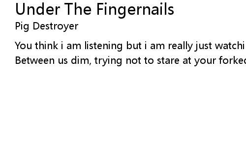 Between us dim, trying not to stare at your forked tongue or the venom it drips.