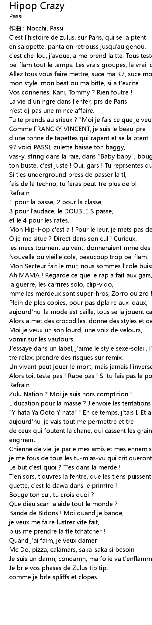 | 97 voici PASSI, zulette baisse ton baggy, | |