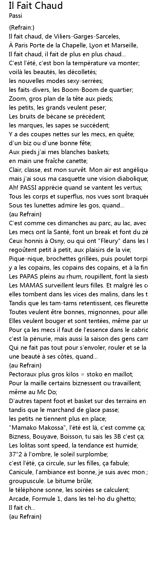 | Song | Il Fait Chaud |