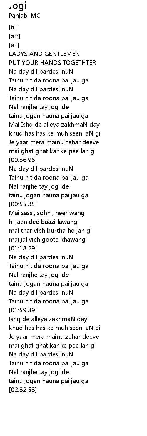 Nal ranjhe tay jogi de |