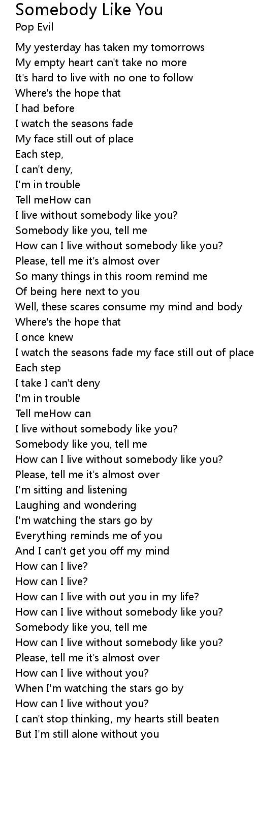 I live without somebody like you? |
