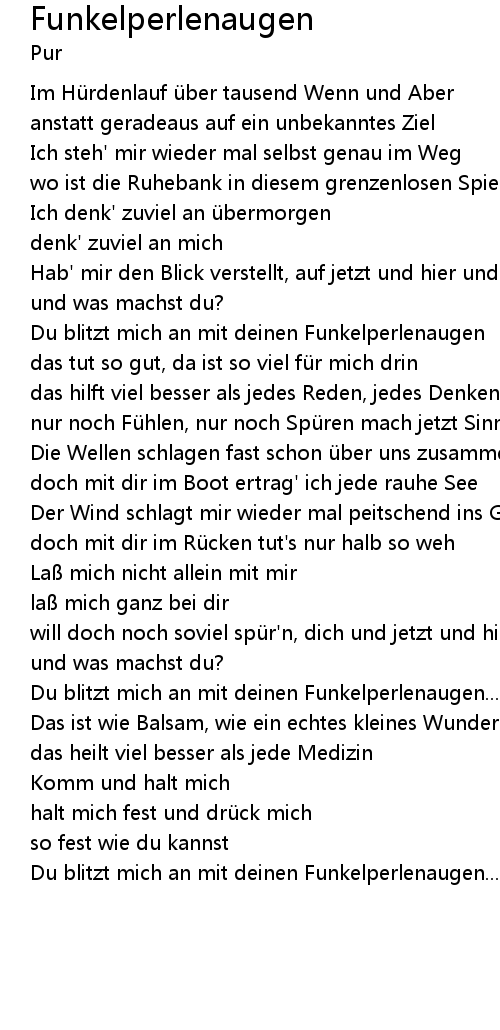 | Du blitzt mich an mit deinen Funkelperlenaugen | |