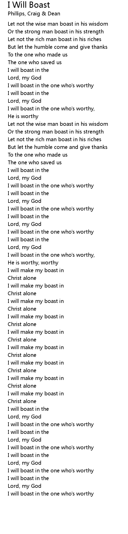 I will boast in the |