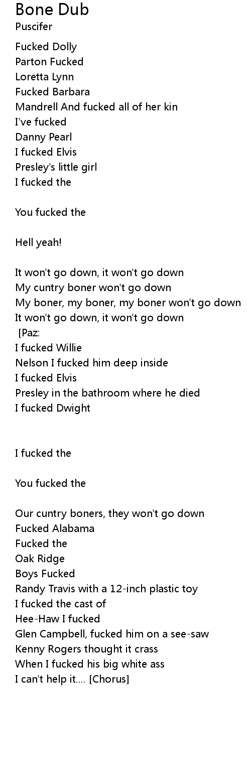 My cuntry boner, it won't go down [Chorus] [Paz:] |