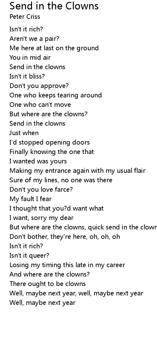 But where are the clowns, quick send in the clowns |