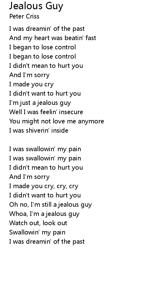 Oh no, I'm still a jealous guy |