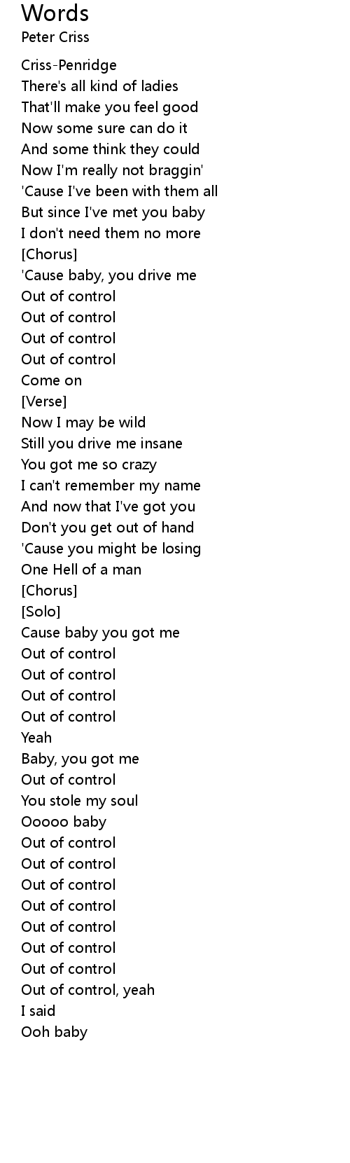 Out of control, yeah |