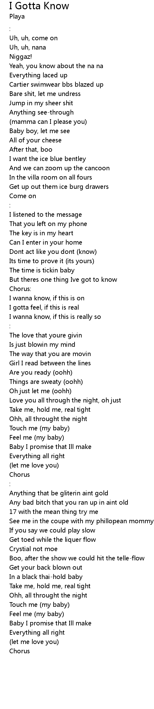 But theres one thing Ive got to know |