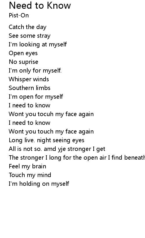 | I need to know | |