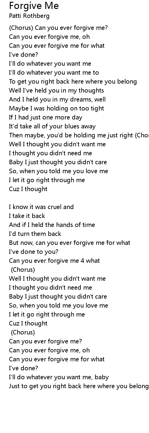 (Chorus) Can you ever forgive me? |
