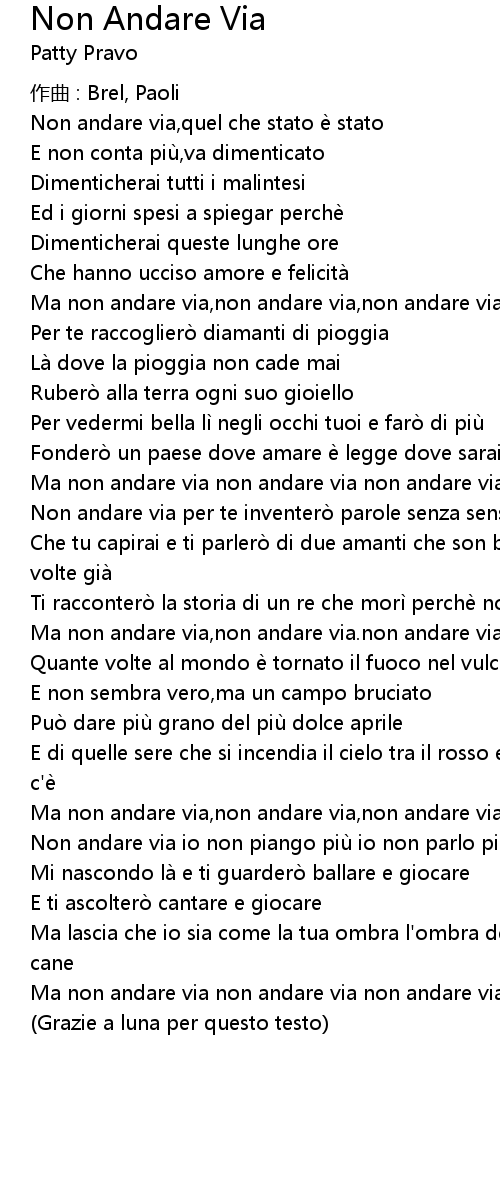 | Non andare via io non piango piu io non parlo piu | |