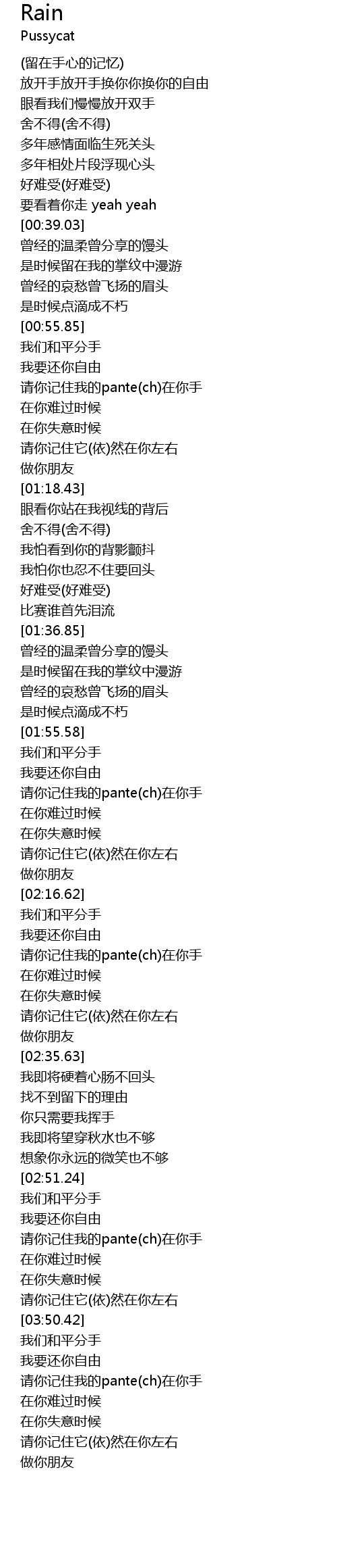 | [03:38.68] | 请你记住我的pante(ch)在你手 |