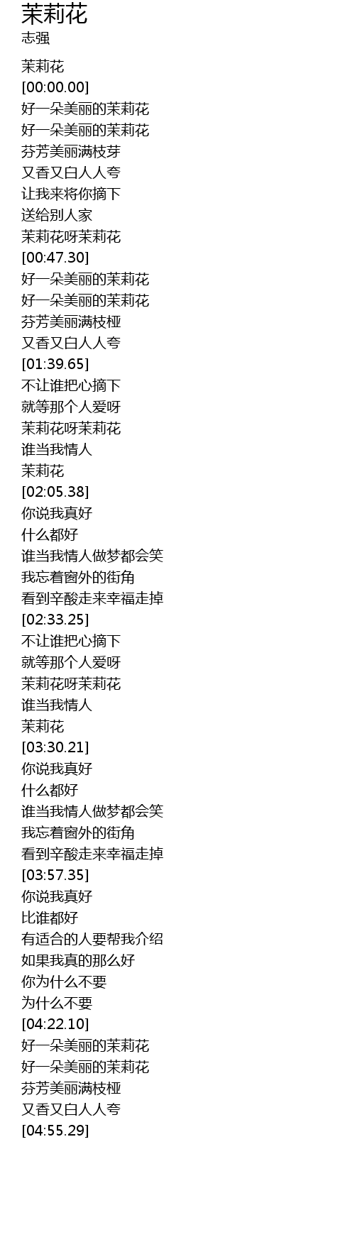 | [00:41.34] | 茉莉花呀茉莉花 |