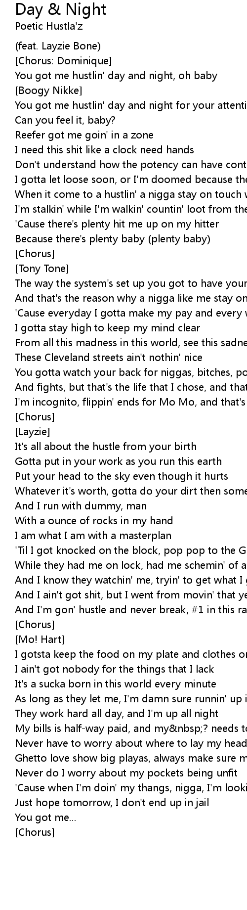 You got me hustlin' day and night, oh baby |