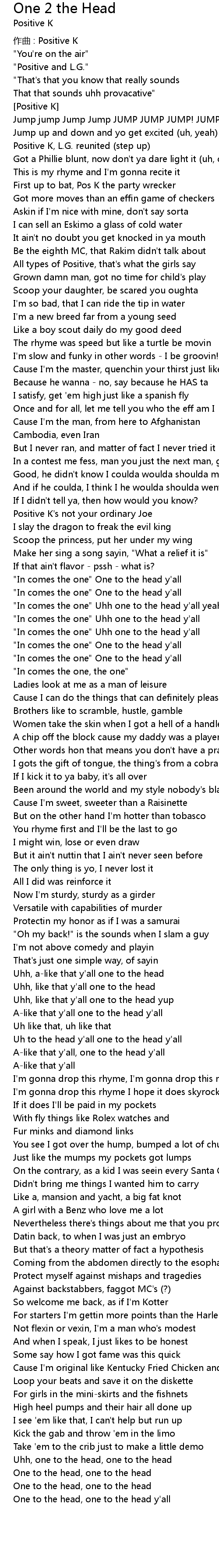 | Song | One 2 the Head |