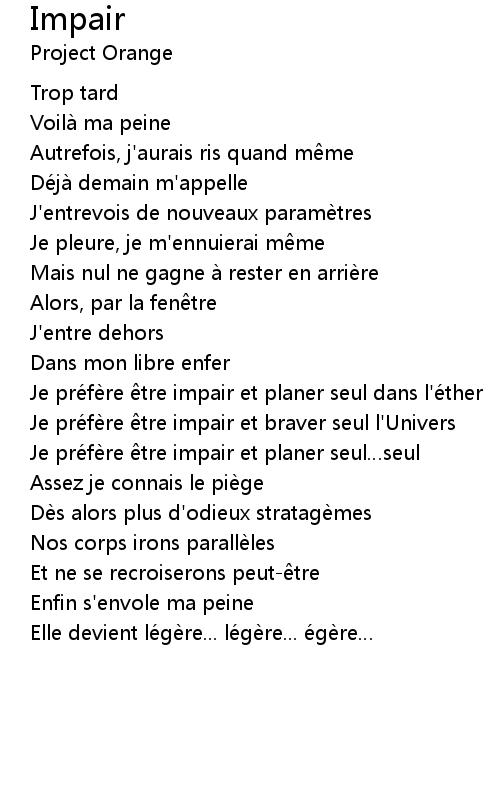 | Je pré fè re tre impair et planer seul dans l'é ther | |