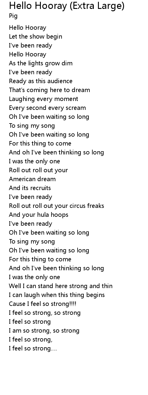 | Song | Hello Hooray (Extra Large) |
