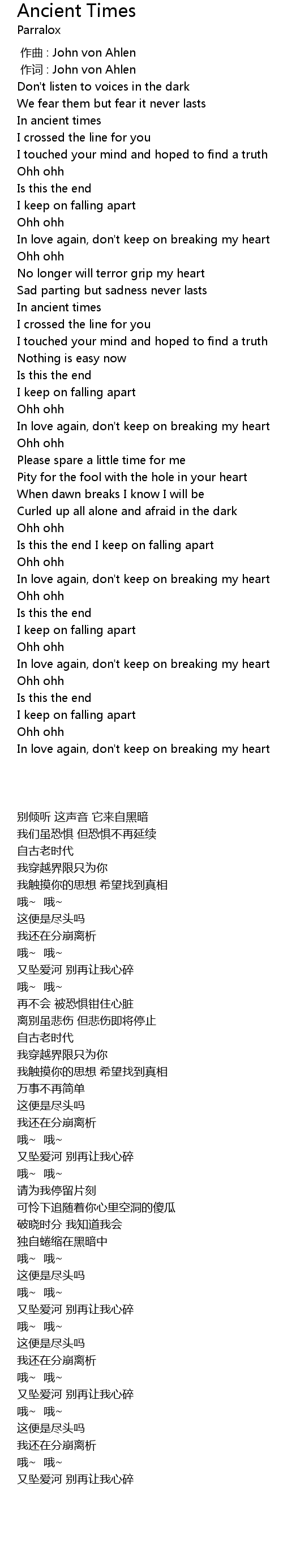 | [03:24.76] | In love again, don' t keep on breaking my heart |