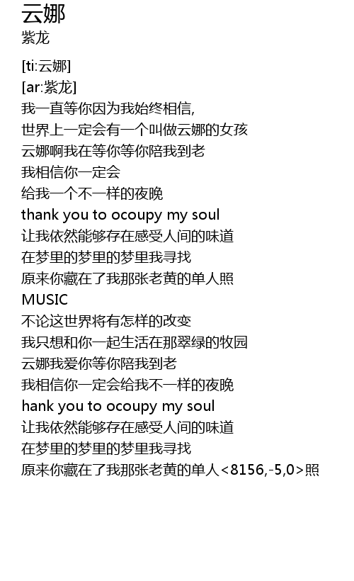 | [00:25.852] | shì jiè shang yí dìng huì yǒu yí gè jiào zuò yún nà de nǚ hái |
