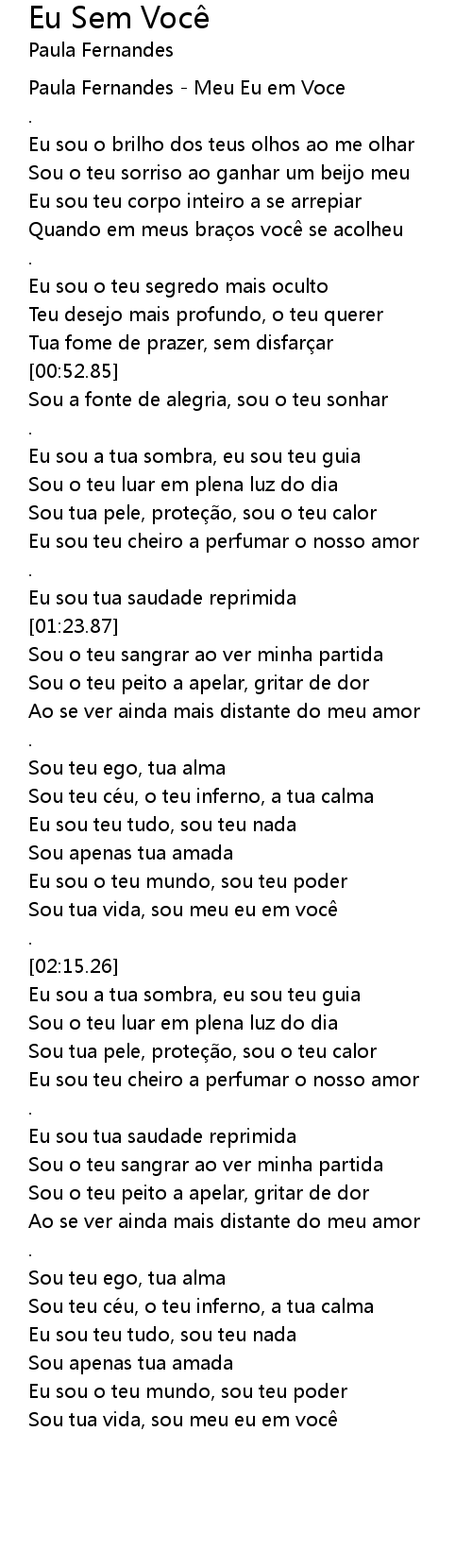 | [02:07.76] | Sou tua vida, sou meu eu em você |