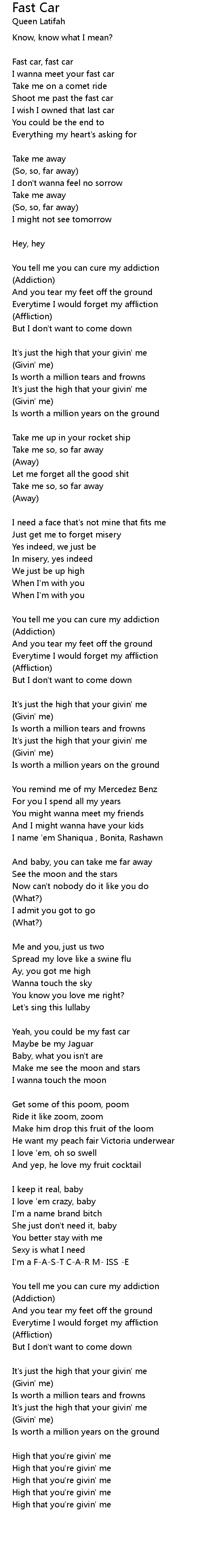 I'm a F-A-S-T C-A-R M- ISS -E |