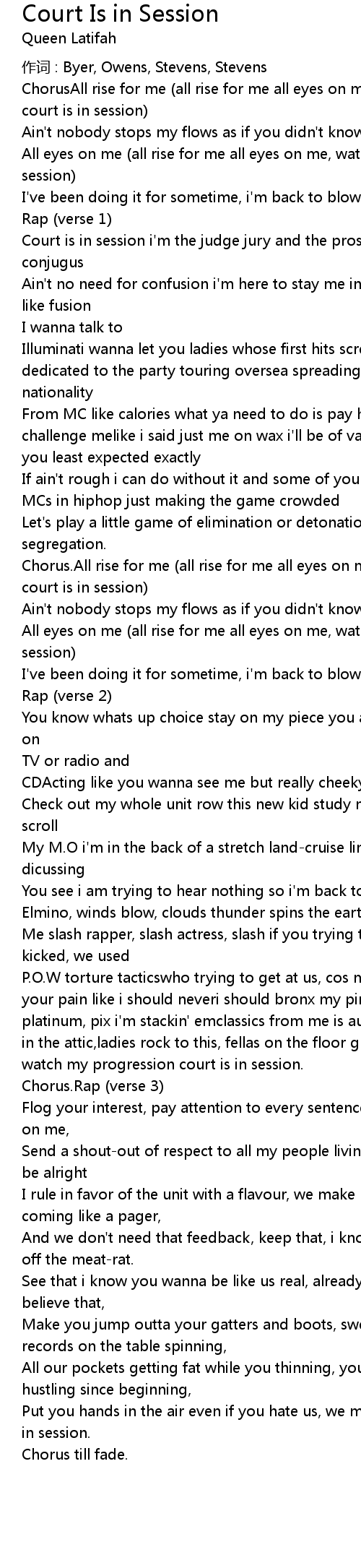 | Chorus. All rise for me all rise for me all eyes on me, watch my progression court is in session | |