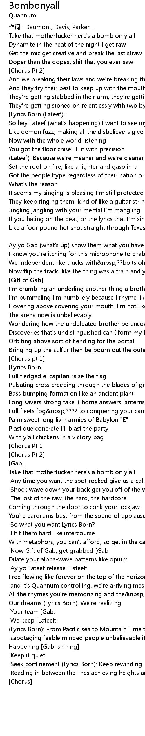 | Gab: So what you want Lyrics Born? | |