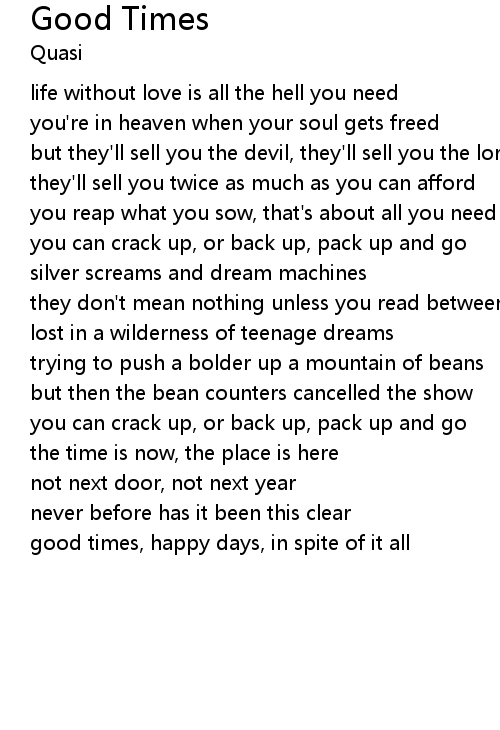 | good times, happy days, in spite of it all |