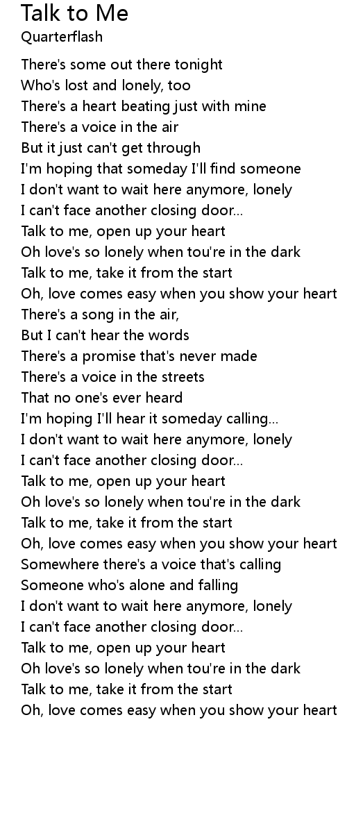 Talk to me, open up your heart |