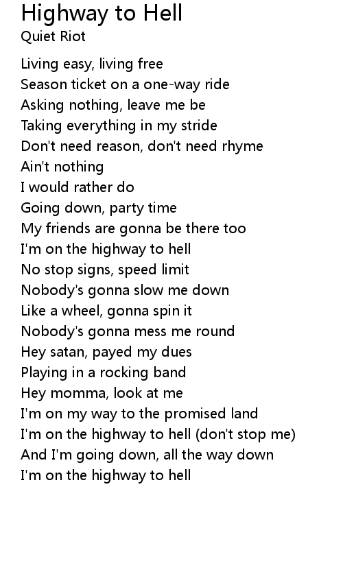I'm on the highway to hell |
