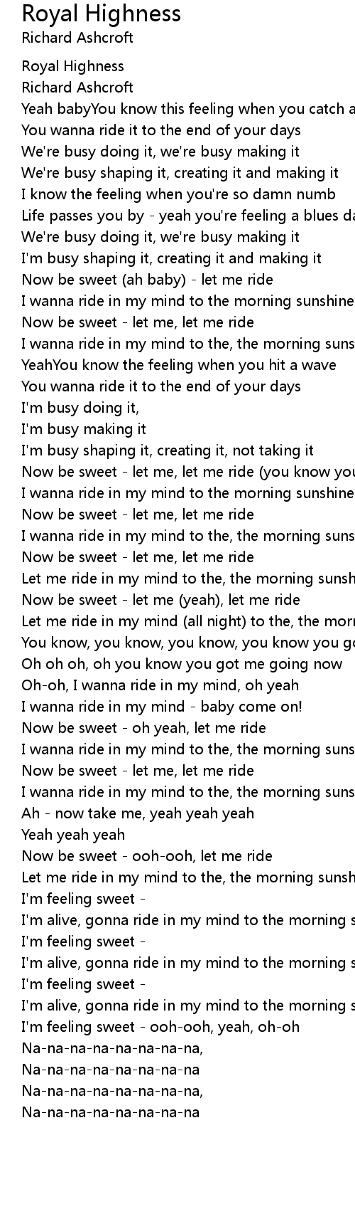 Royal Highness Lyrics