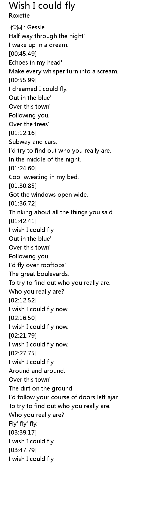 | [01:45.85] | I wish I could fly. |