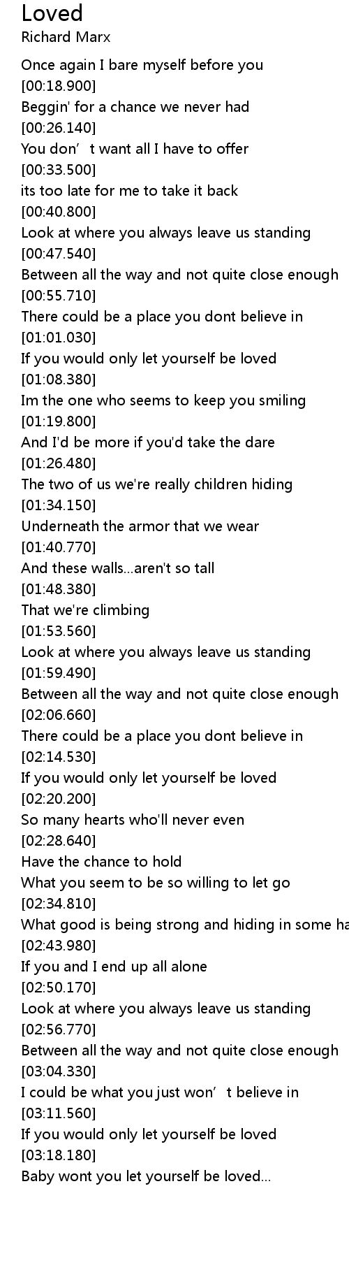 | [03:20.680] | Baby wont you let yourself be loved... |