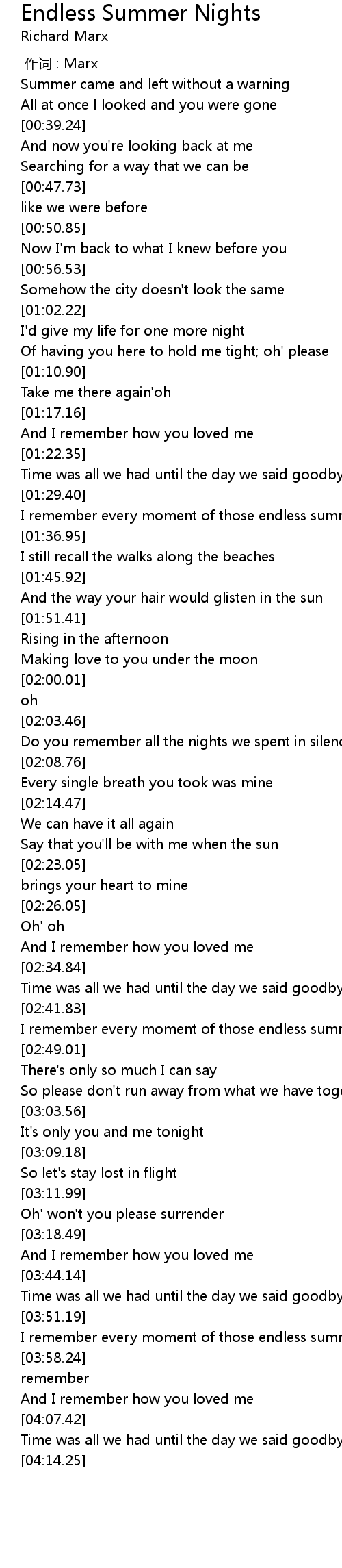 | [03:52.13] | I remember every moment of those endless summer nights |