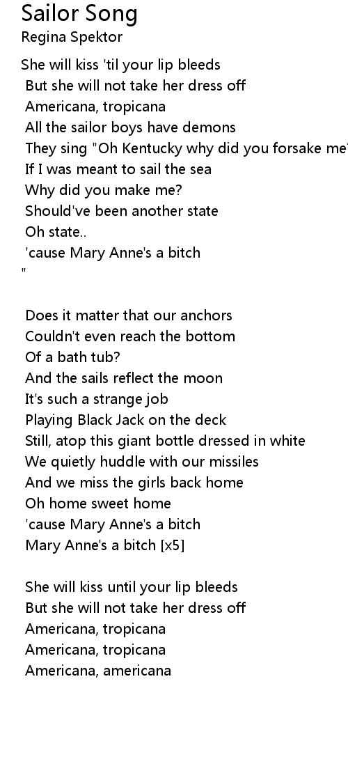 Mary Anne's a bitch [x5]" |