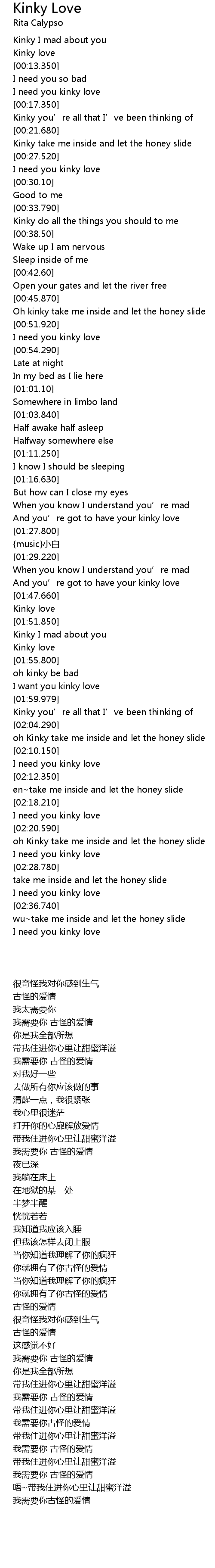 | [00:48.740] | Oh kinky take me inside and let the honey slide |