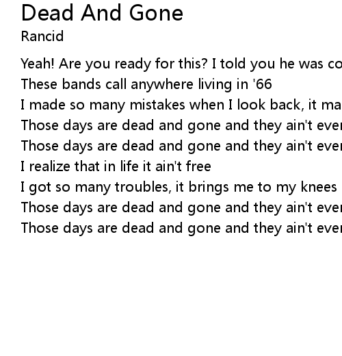 | Those days are dead and gone and they ain't ever coming back | |