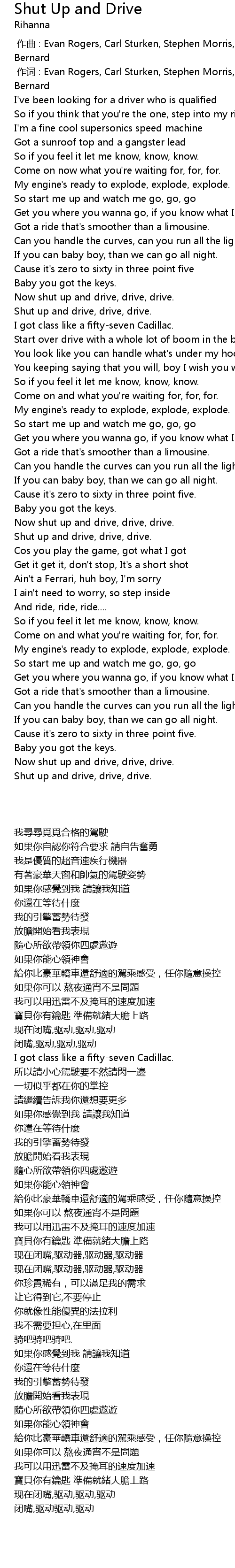 | [02:05.290] | Shut up and drive, drive, drive. |
