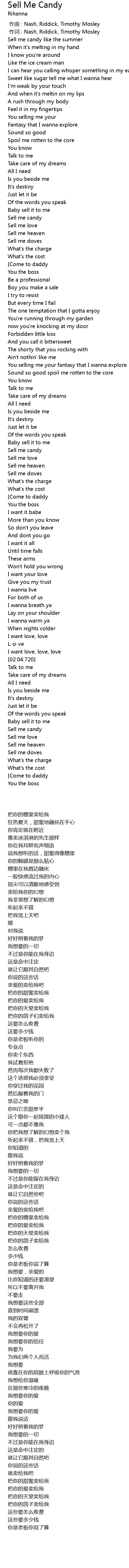 | [00:01.410] | Sell me candy like the summer |